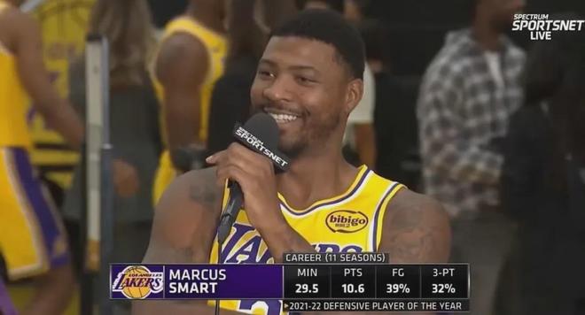 1994年3月6日出生的斯玛特,14届首轮6号秀,身高1米93&臂展2米06,曾在21-22赛季当选DPOY,并且3次入选最佳防守一阵,3次获得最佳拼搏奖,今夏休赛期与奇才达成买断协议之后与湖人签约两年1100万美元,明夏拥有球员选项。